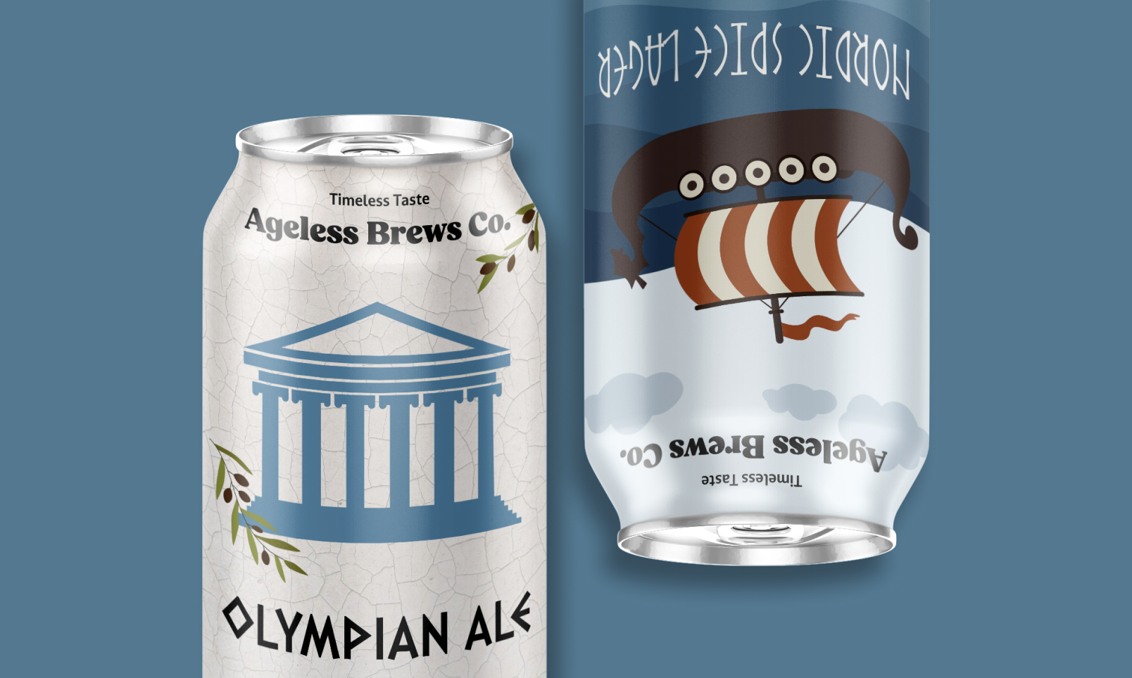 För mitt fiktiva ölföretag, Ageless Brews Co., utvecklade jag en komplett varumärkesidentitet. Jag designade även en användarvänlig hemsida och skapade ett Instagram-grid med 80/20-metoden för att balansera inspirerande innehåll med marknadsföringsbudskap.